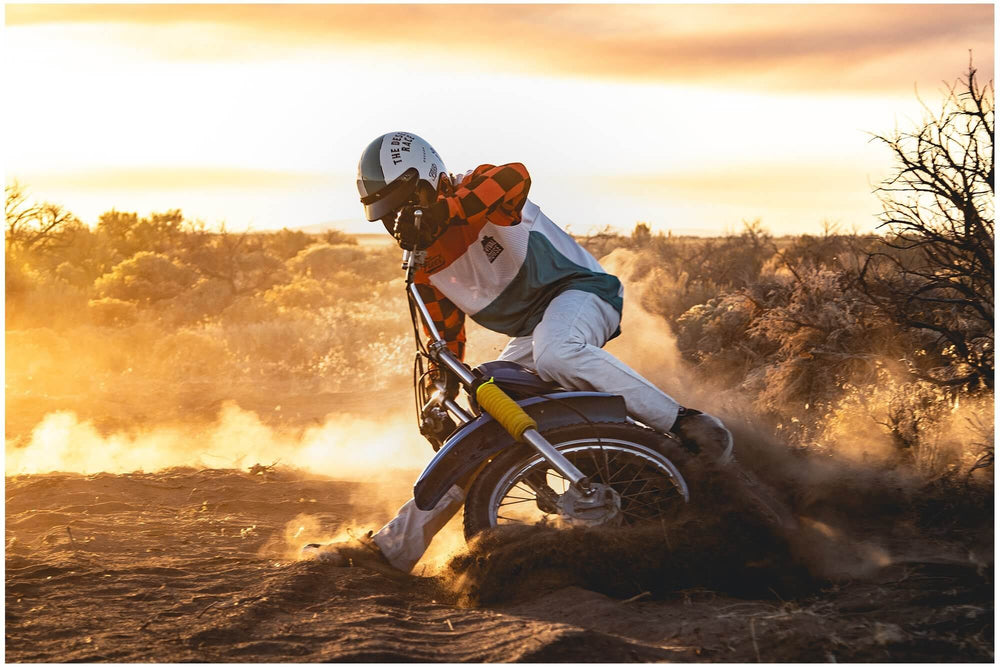 The Revival House presents this genuine grassroots event including good 'ole scramblers, motocross, and sprints all under the umbrella of desert racing. The Desert Race is an alternative motorcycling festival that encourages a diverse blend of motorcycle fans, motocross racers, beginners and pros, custom bike builders, speed shops with a legendary history, fans of 2 wheels or 4, weekend race fans all from around the world. And this year we were there with Matt Collins to take our new "The Desert Race" Jersey and the VELDT Helmet to be washed with some dust at the Oregon Outback.